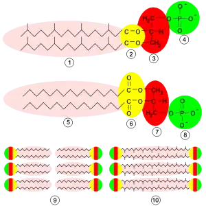 - ↑ Hanford MJ, Peeples TL (January 2002). "Archaeal tetraether lipids: unique structures and applications". Appl. Biochem. Biotechnol. 97 (1): 45–62. doi:10.1385/ABAB:97:1:45. PMID 11900115.