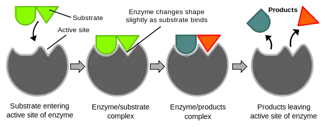 There are two theories that describe the binding of enzymes: 1) Lock and Key Theory and 2) Induced Fit Theory.
