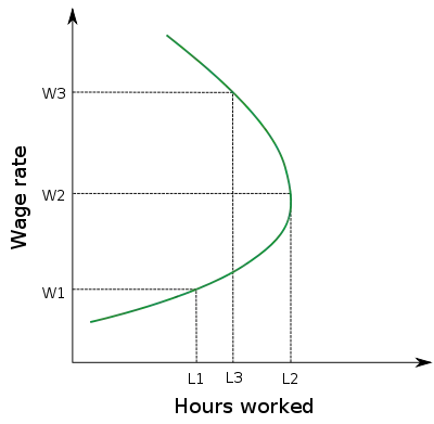 However, if the real wage increased from W2 to W3, then the number of hours worked per year would fall from L2 to L3. This is because the income effect has now become greater than the substitution effect. This is because utility gained from an extra hour of leisure is greater than the utility gained from the income earned working. Beyond this point, workers have reduced incentives to work because they are already being paid enough to sustain their current lifestyle without having to work more hours, therefore creating the backwards bend in the curve.