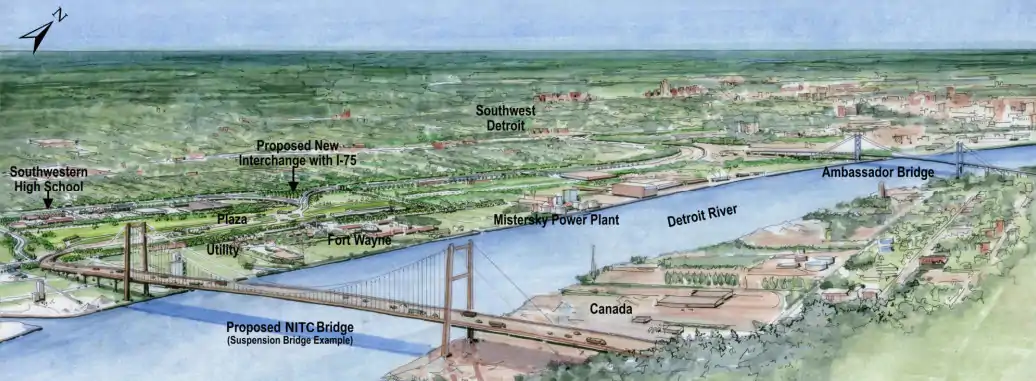 Three organizations are currently bidding for the opportunity to become the project’s private partner. The Windsor-Detroit Bridge Authority and its board will choose the winning bid over the next year based on cost estimations, construction timelines, and design and concept choices. A Request for Qualifications was put out by the WDBA which gave any interested party the chance to put their name in for a chance to bid to win the project. Once all entries were looked over, the WDBA narrowed their search down to three groups who will begin working on the next phase of partner selection. The three organizations, all made up of multiple smaller architectural and construction companies and teams, are Bridging North America, CanAm Gateway Partners, and Legacy Link Partners. Only the three groups chosen from the RFQ will get the chance to participate in the RFP stage, and from this pool, the best bid will be chosen by the WDBA who will work with the private entity on the construction phase of the project. [12][13]