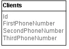 Not being in first normal form makes queries complex and inefficient if you want to look up a client from a given phone number. Since you don't know which of the fields the phone number will appear in, you have to do something like the following: