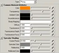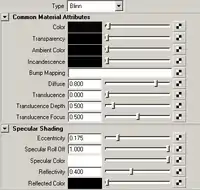 - Create a Blinn material just like you did before. Blinn differs from Lambert for example (which is the standard material in Maya) that it has a reflectivity parameter.