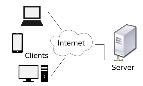 A game server and the clients connected to it together form a network. The networks of ROBLOX game servers are said to operate on a client–server model because of the way the network nodes (the peers) are arranged: the clients communicate to the server and the server communicates to the clients but the clients do not communicate directly with one another. The topology of a network is the way the nodes are arranged in that network.