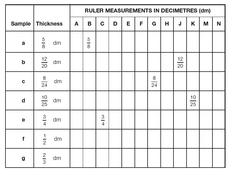 No evidence that rulers were used correctly to recognise fractions |