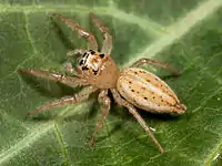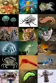 An arthropod is an invertebrate animal having an exoskeleton (external skeleton), a segmented body, and jointed appendages (paired appendages). Arthropods form the phylum Arthropoda, and include the insects, arachnids, myriapods, and crustaceans. Arthropods are characterized by their jointed limbs and cuticle made of chitin. The rigid cuticle inhibits growth, so arthropods replace it periodically by molting. Arthropods range from lobsters and shrimp to spiders, millipedes, and insects. Arthropoda is the most diverse animal phylum, especially since it includes insects (which account for the vast majority of animal species in the world). However, it is only one of several phyla of invertebrates. Other invertebrate phyla include Annelids (segmented worms), Molluscs (snails, slugs, octopus and squid), Cnidarians (jellyfish), Echinoderms (star fish), and many more.