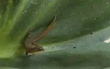 Amphibians typically start out as larvae living in water, but some species have developed behavioral adaptations to bypass this. The young generally undergo metamorphosis from larva with gills to an adult air-breathing form with lungs. Amphibians use their skin as a secondary respiratory surface and some small terrestrial salamanders and frogs lack lungs and rely entirely on their skin.