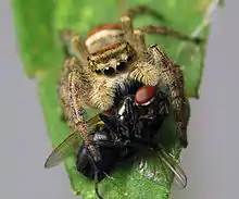 The resulting visual performance is impressive: Jumping spiders such as Portia focus accurately on an object at distances between 2 centimeters to infinity, being able to see up to about 75 centimeters in practice. The time needed to recognize objects is however relatively long (seemingly in the range of 10-20 s) because of the complex scanning process needed to capture high-quality images from such tiny eyes. Due to this limitation, it is very difficult for spiders such as Portia to identify much larger predators fast enough because of the predator´s size, making the small spider an easy prey for birds, frogs and other predators.[5][6]