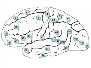 Sound information that reaches the primary auditory cortex (Brodmann areas 41 and 42). The primary auditory cortex is the first relay involved in the conscious perception of sound. It is known to be tonotopically organized and performs the basics of hearing: pitch and volume. Depending on the nature of the sound (speech, music, noise), is further passed to higher order auditory areas. Sounds that are words are processed by Wernicke’s area (Brodmann area 22). This area is involved in understanding written and spoken language (verbal understanding). The production of sound (verbal expression) is linked to Broca’s area (Brodmann areas 44 and 45). The muscles to produce the required sound when speaking are contracted by the facial area of motor cortex which are regions of the cerebral cortex that are involved in planning, controlling and executing voluntary motor functions.