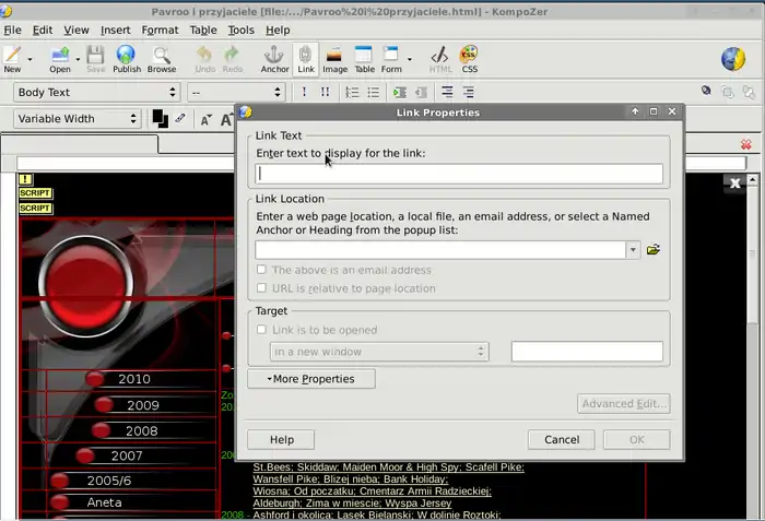 3. And open extracted template with KompoZer clicking on "Open" icon.