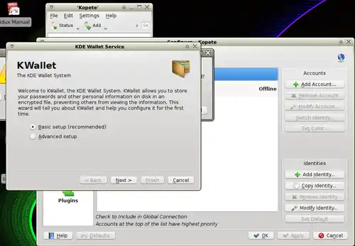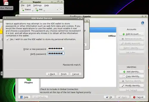 - e. After that KDE KWallet ask you to create main password to protect your saved passwords