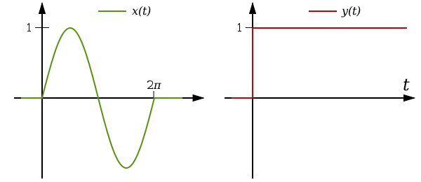 The signal y(t) is simply the Heaviside step, u(t).