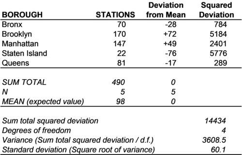 Figure 4-13. Calculating the standard deviation of New York City subway stations per borough, 2010