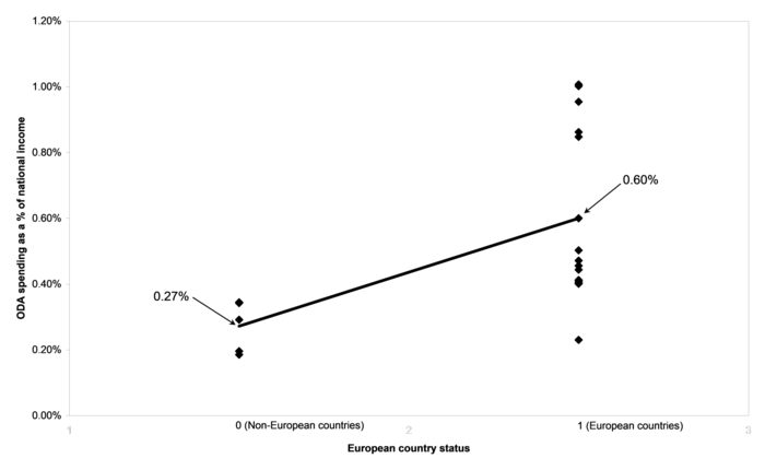 Figure 4-3. Regression of ODA spending on European country status, 2008