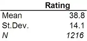 5.2. Types of error The island of Taiwan has had a difficult history. Long a part of China, it was subjected to 50 years of Japanese occupation from 1895-1945. Then in 1949 1.5 million mainland Chinese refugees from the Communist takeover of China flooded into Taiwan, swelling the population from 6 million to 7.5 million in one year. From 1950 through 1991 Taiwan was ruled by a military government that was dominated mainly by Chinese who had fled to the island in 1949. In short, for nearly a century before 1991 Taiwan was ruled by one form of dictatorship or another. No one alive in Taiwan today ever experienced democracy before the first free elections in 1991. As a result, younger Taiwanese have grown up under democracy, but older Taiwanese have strong memories of living under dictatorship. Are Taiwanese people today happy with the state of their democracy? Everywhere in the world social scientists find that people desire more democracy than they feel they have. The difference between people's desire for democracy and people's perception of how much democracy they actually have is called the "democratic deficit." Like people around the world, people in Taiwan feel that they do not have a democracy. People's ratings of democracy in Taiwan can be studied using data from the World Values Survey (WVS), which was conducted in Taiwan in 2006. The democracy rating has been scored on a scale from 0 to 100 where: Rating = 0 means the respondent thinks there is not enough democracy in Taiwan Rating = 50 means the respondent thinks there is just the right amount of democracy in Taiwan Rating = 100 means the respondent thinks there is too much democracy in Taiwan The results of a mean model for the democracy rating in Taiwan are summarized in Figure 5-6. The mean rating of 38.8 indicates that most people in Taiwan think there is less democracy than they would like, just as in the rest of the world. Since the democracy rating score is less than 50, there is a democratic deficit in Taiwan. Of course, not everyone in Taiwan feels this way. The standard deviation of 14.1 indicates that there is a wide spread in attitudes toward democracy. Still, the deficit makes it is pretty clear that Taiwanese people as a whole would like more democracy than they feel they have. The mean score (38.8 points) is almost one full standard deviation below 50.