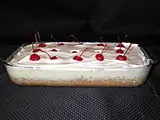 No tiene manzana. El pastel de tres leches tiene manzana.