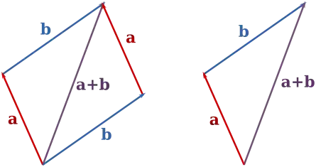 This method is most easily executed using graph paper. Establish a rectangular coordinate system, and draw the first vector to scale with the tail at the origin. Then, draw the second vector (again, to scale) with its tail coincident with the head of the first vector. Then, the properties of the sum vector are as follows: