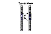 An inversion is a rearrangement of the chromosomes where a segment of the chromosome is reversed end to end. An inversion occurs when a single chromosome undergoes breakage and rearrangement within itself. There are two types of inversions: paracentric and pericentric. Paracentric inversions do not include the centromere and so both breaks occur in one arm of the chromosome. Pericentric inversions do include the centromere and so there is a break point in each arm.
