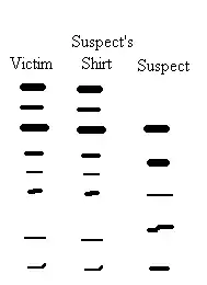 Forensics: A small amount of DNA obtained from the somewhere at the crime scene (i.e. blood on a suspect's shirt) can be amplified using PCR and compared with the victim's and suspect's DNA. A fraction of a drop of blood or a single hair might not contain enough DNA for testing without PCR, but PCR makes testing this small amount of DNA possible. Sequencing the DNA is too laborious, so restriction enzymes are used to create a DNA fingerprint. The DNA sample is subjected to one or more restriction enzymes for a set length of time. The restriction enzymes cut the DNA at their recognition sequences, but not at every recognition sequence (they would if there was more time). If the DNA is different, the enzymes will cut different lengths of DNA and if the DNA is the same, the enzymes will cut the same distribution of lengths in both samples. The DNA fragments from each sample are run through a gel and compared. This can provide strong evidence of the innocence or guilt of a suspect. [22]