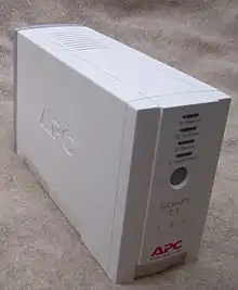 An uninterruptible power supply is a device that contains a built in battery that provides power. A UPS will allow devices to remain powered up in the event of a power outage. The time that the UPS can stay powered depends on the type of devices connected to it. Most UPS devices protect against power fluctuations. Most UPS batteries last 3 to 5 years before they need to be replaced. UPSes are helpful if a user experiences a power outage while in the middle of typing a document, allowing the user to quickly save open documents and shut down the computer properly.[1]