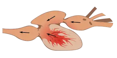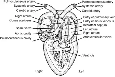 Human hearts have four chambers. Frogs have three chambers. The fish heart only has an atrium and a ventricle. Blood is transported from the heart to the Arteries through Arterioles and then to the capillaries, it comes back to the heart through venules and then to veins. All three organisms have closed circulatory systems.