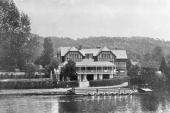 George Duncan Rowe (1857-1934) went head of the river at Oxford with University College in 1877 and 1878, and rowed in the Boat Race in 1879 and 1880. He was president of the O.U.B.C. the latter year, succeeding W.H. Grenfell. He co-captained Leander in 1883. As secretary (1887-97), he helped secure Temple Island for a Leander enclosure when the club was still based at Putney and orchestrated the construction of the Henley boathouse a decade later. It “is a great institution for that Club,” wrote Vanity Fair (July 22, 1897), “with a site on the bank close to the bridge, coffee and reading rooms, twenty bedrooms, ladies’ coffee-room, and a verandah balcony round two sides of the building. For luxury no modern rowing club house can come near it, and the architecture makes it a thing of beauty, and in full keeping with the weeping willow villa which it adjoins.” In 1900, he made the White House Meadow, where the Remenham Club and Regatta enclosure now stand, available as an enclosure for Leander members in lieu of Temple Island. Club president from 1919 to his death in 1934, Rowe would offer up his resignation at the annual dinner, to find it ignored and be “unanimously and uproariously reelected for another year.”