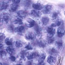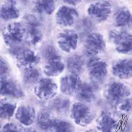 8. spermatocyte, zygotene stage of meiotic prophase ("bouquet" configuration of chromosomes)