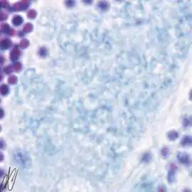 [Berg-JW. Differential staining of spermatozoa in sections of testis. Am.J.Clin.Pathol.23:513-515;1953.]