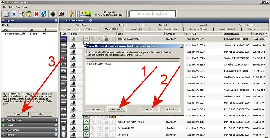 Now having got you reskin or other item ready to upload drag it to the uploads in CMP. You need to do the following three steps.