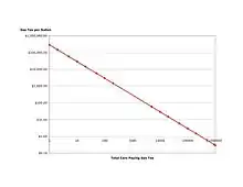 Gas Tax and Electric Vehicle Usage (+) Imagine all gasoline vehicle users pay for all transportation costs. Imagine total expenses are $100,000,000 and the total number of users are 1,000,000, traveling 10,000 miles per year (for a total travel of 10,000,000,000 miles per year, at a cost of $0.01/mile), and all gasoline powered cars get 30 MPG. In that case, if all vehicles are gasoline powered, the gas tax will be $0.30/gallon (or $0.01/mile), in line with current costs. Now imagine, only half of all cars pay the gas tax, the tax jumps to $0.60 to cover costs, still quite tolerable, but as the gas tax rises, the number of gasoline powered cars should be expected to fall. The following image shows the expected gas tax based on the above assumptions with a varying number of gasoline powered cars on the road. Note especially this is a log-log scale. At 50,000 cars with gasoline engines (95% non-gasoline powered), the tax jumps to $6.00 per gallon (above European levels), but the last car has to pay $300,000 per gallon. The move away from the gas tax is a positive feedback system that will accelerate. A replacement may be required.
