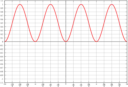 It looks like a sine or cosine wave shifted and compressed. It is. We will show this is true later when we look at double angle formulae and prove that .