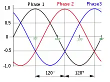 3 phase AC waveform. Trigonometry functions are used in Electrical Engineering
