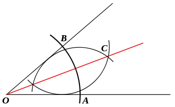 1. Call the vertex of the angle O. Draw a circle centered at O.