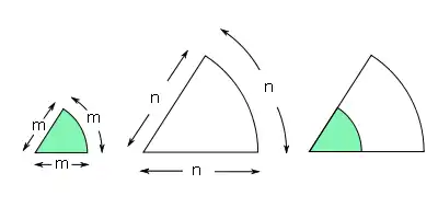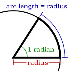 Suppose you wish to measure the angle between two lines exactly so that you can tell a remote friend about it: draw a circle with its center located at the meeting of the two lines, making sure that the circle is small enough to cross both lines, but large enough for you to measure the distance along the circle's edge, the circumference, between the two cross points. Obviously this distance depends on the size of the circle, but as long as you tell your friend both the radius of the circle used, and the length along the circumference, then your friend will be able to reconstruct the angle exactly.