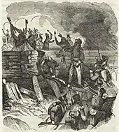 On December 29, Canadian loyalist Colonel Sir Allan MacNab ordered a party of militia to cross the river and set the Caroline ablaze. Finding the ship docked at Fort Schlosser, New York, they seized it, towed it into the current, set it afire, and cast it adrift over Niagara Falls. The American Amos Durfree, a Black, was killed during the incident. Although the ship had been abandoned before being set adrift, American newspapers falsely reported that dozens of citizens had been killed as they were trapped on board. President Martin Van Buren entered an official protest of the loss of life. In retaliation, on May 29, 1838, an American river pirate and his men burned British steamer Sir Robert Peel while it was in the United States. After the burning of the Caroline, the Macknenzie party had no means of gaining supplies, and eventually folded.