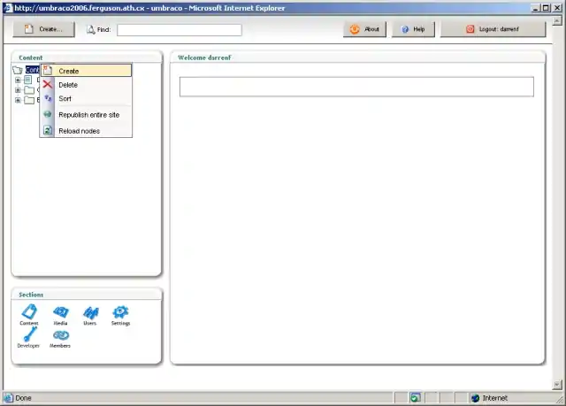 Click on the 'Content' icon in the Umbraco dash board. Right click on the Top level content node in the 'Content' pane on the left hand side of the Umbraco GUI. Click 'Create'.
