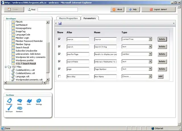 In Umbraco click on the SearchResult.xslt file that you have just just created in the 'Developer' pane on the left hand side of the GUI. Paste the contents of your clipboard into 'Source' textarea replacing the existing contents.