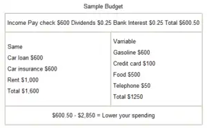 A written spending plan each month helps you keep household spending under control. It lists income, required expenses and the amount left for optional expenses, and can be shown to people. First, you list your sources of income such as allowance, stock dividends, pan handling, trying to make a sale, and disability checks. You next add the amounts (which include estimates) together to write down your income for the month. Step two is listing your fixed expenses. These include bus money, rent, cable TV and other bills that stay the same. Add those amounts together to get the amount “total fixed expenses.” Then you write down your estimates of your variable expenses, and add them together. Variable expenses are things like food, electric bill, clothing and medical care. Add total fixed and variable expenses to find total basic expenses. When you subtract the basic expenses from estimated income you get the amount left for optional (discretionary) expenses. Examples of discretionary expenses are gym memberships, movies, golf, and vacation trips to resorts. If the discretionary amount is a negative number, you’ll need to reduce your spending somehow. If saying no to a child or employee’s request for a raise, showing your monthly budget might help. The budget may be neatly written or printed on a single sheet of paper.[4]