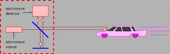 - A police radar works by splitting a beam of microwaves, part of which is reflected back to the radar from your car where it is made to interfere with the other part which travels a fixed path, as shown in figure 1.19.