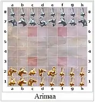 Arimaa is a two-player 8-by-8 board game with simple rules, but a very large selection of moves. Most Arimaa positions defy precise calculation, and the game's creator hoped it would prove easier for humans than for computers. In 2015, however, a bot defeated three top human players, winning the Arimaa Challenge.
