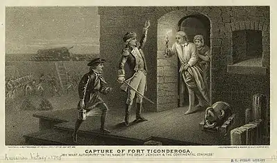 He was an early American revolutionary leader. He captured Fort Ticonderoga on May 10, 1775, from the British forces. Allen's men also quickly captured forts at Crown Point, Fort Ann on Isle La Motte near the present Canadian border, and the town of St John. The huge stores of cannon and powder seized at Ticonderoga allowed the American rebels to break the stalemate at the siege of Boston, which caused the British to evacuate the city in March 1776. Allen also took part in the invasion of Canada in late 1775. However, when he led an attack on Montreal, he was captured and the attack failed. Allen was shipped to Britain in 1776, then back to New York City, which had been captured by the British, in 1778. Soon after arriving in New York City, he was exchanged and freed.