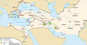 The Persian Empire started in the south of what is now Iran. It grew through military conquest to cover a huge region that roughly encompasses today's Iran, Iraq, Armenia, Afghanistan, Turkey, Bulgaria, many parts of Greece, Egypt, Syria, much of what is now Pakistan, Jordan, Israel, the West Bank, the Gaza Strip, Lebanon, Caucasia, Central Asia, Libya, and northern parts of Arabia. The empire eventually became the largest empire of the ancient world.