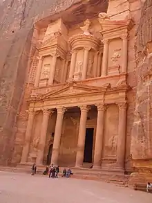 Petra - It is an archeological site which was carved directly into vibrant red, white, pink, and sandstone cliff faces. The most popular one that are shown in Indiana Jones Film are the Treasury Entrance