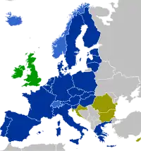 The following countries have singed the agreement and removed border controls: Portugal, Spain, France, Luxembourg, Belgium, Netherlands, Germany, Denmark, Iceland (not part of the EU), Sweden, Norway (not part of the EU), Finland, Estonia, Latvia, Lithuania, Poland, Slovakia, Czech Republic, Austria, Switzerland (not part of the EU), Italy, Malta, Slovenia, Hungary, and Greece. Liechtenstein joined at the end of 2011. The only EU countries where passports are still needed to enter from other EU countries are the Ireland, Cyprus, Romania and Bulgaria. Ireland and former EU member, the UK, form the Common Travel Area, which is similar to the Schengen Area in that there are very few border controls between the two countries.