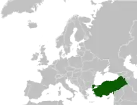 Turkey is a large country in south eastern Europe and western Asia. It shares borders with Greece, Bulgaria, Georgia, Armenia, Azerbaijan (Nakhichevan), Iraq, Iran and Syria. The capital city is Ankara. Other large cities are Istanbul and Izmir. Turkey is not a member of the European Union but would like to become a member in the future. The currency of Turkey is the Turkish Lira.