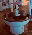 • Step 6: The mixture now undergoes a process known as conching, in which it is continuously turned and ground in a huge open vat. The process's name derives from older vats, which resembled large conch shells. The conching process can last about three hours This is the most important step in making chocolate. The speed and temperature of the mixing are critical in determining the quality of the final product.