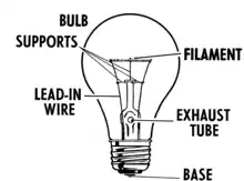After hundreds of hours of operation the filament in the bulb eventually burns out and the light bulb no longer works. The light bulb then needs replacing. It is necessary to be careful in replacing the light bulb. First, the switch for the light fixture needs to be turned off or the cable disconnected. This is because electricity flowing into the socket where the metallic part of the bulb sits can give you a severe electric shock if you touch the inside of the socket or the metal base of the bulb while it is still partly in the socket. In addition, if the glass breaks it is possible to get cuts. These hazards can be reduced by ensuring the bulb is cool to the touch before grasping it and by holding it firmly but not squeezing by the fattest part of the glass while rotating counter-clockwise until it comes completely loose.