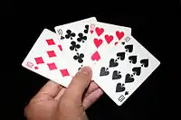 Playing cards come in two colors (red and black). | |