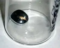 Mercury is a silvery metal that is liquid at room temperature. It is very dense, which means that it is very heavy even if you don't have very much of it. One tablespoon of mercury would weigh almost 8 ounces (230 grams) — this is heavy enough for metal objects like coins to float in it!