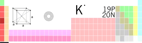 Potassium's chemical symbol, K, comes from the Arabic word القلية (al-qalya), meaning potash, formed into the Latin word "kalium", most likely because it is an alkali metal.