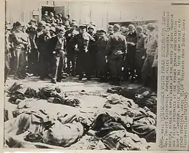 General (later US President) Dwight Eisenhower inspecting prisoners' corpses at a liberated concentration camp, 1945